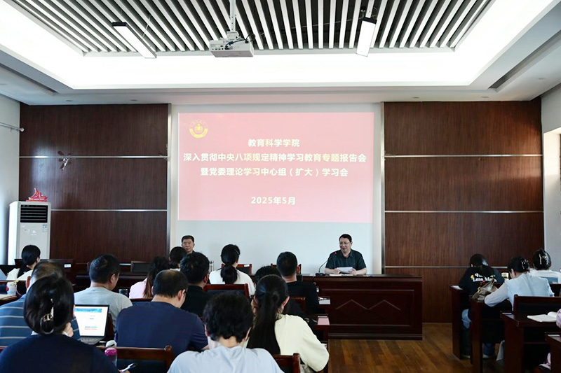 教科网5月22日电(记者 高灿)为深入学习领会习近平总书记关于加强党的作风建设,贯彻中央八项规定精神学习教育,强化党员干部作风建设,5月21日下午,ky开云网页版app教育科学学院于1-503开展了深入贯彻中央八项规定精神学习教育专题报告会暨党委理论学习中心组(扩大)学习会。本次讲座特邀ky开云网页版app关工委顾建国教授担任主讲人,ky开云网页版app党委书记葛军主持,学院全体师生党员参会。