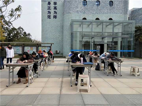 图为“书写恩来精神,纸传博爱情坏”师范生技能大赛现场。记者 汪婷 摄