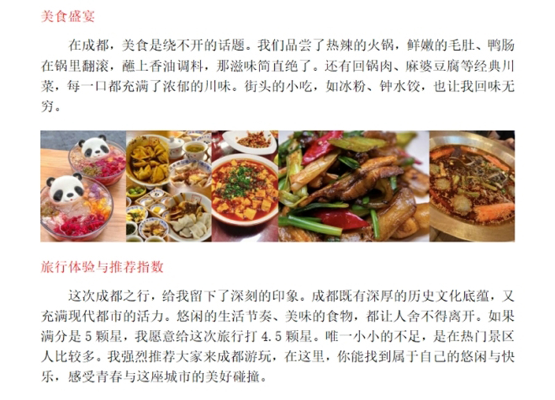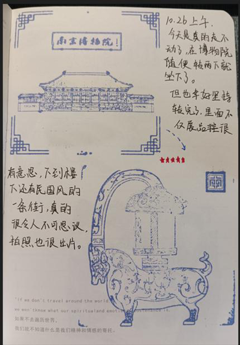 在我们本次的活动中,同学们也分享了自己的青春旅游日志。从学校出发,前往中国各地,济南、成都、南京、河南等。同学们一路上欣赏了当地的地标建筑,领略历史文化;品尝了当地特色美食,感受味蕾上的刺激;体验了特色当地服饰,走进美的世界。