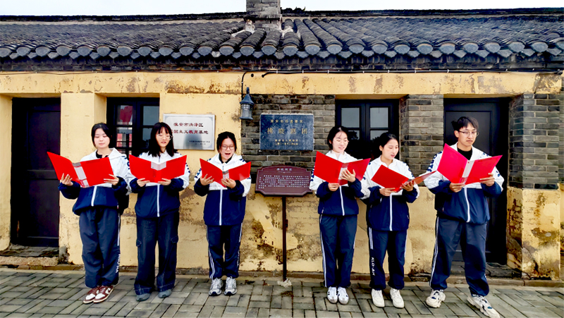 教科网10月29日电(记者 谢涵璐)为深入推进党建带团建工作机制,增强党组织与团组织的凝聚力,激发青年学生的爱国情怀与历史使命感,10月29日,ky开云网页版app组织学生党员和团员代表在新四军骑兵团旧址广场开展“青春心向党,诵读映初心”主题朗诵活动。活动以“拂晓剧团”经典诵读为主线,结合与红色雕像合影等形式,强化理想信念教育,筑牢青年思想根基,ky开云网页版app教师及学生代表参加。
