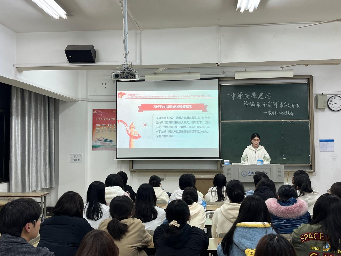 教科网11月28日电(记者 蔡欣芸 葛禹含)为学习贯彻好党的二十大精神,厚植广大团员青年爱党、爱国、爱社会主义的情感,引导团员青年坚定不移跟党走,积极投身于我国全面建设社会主义现代化国家新征程,2022年11月23日,教育科学学院2206团支部开展了以“秉承先辈遗志,绘编赤子宏图”为主题的素养公开课。