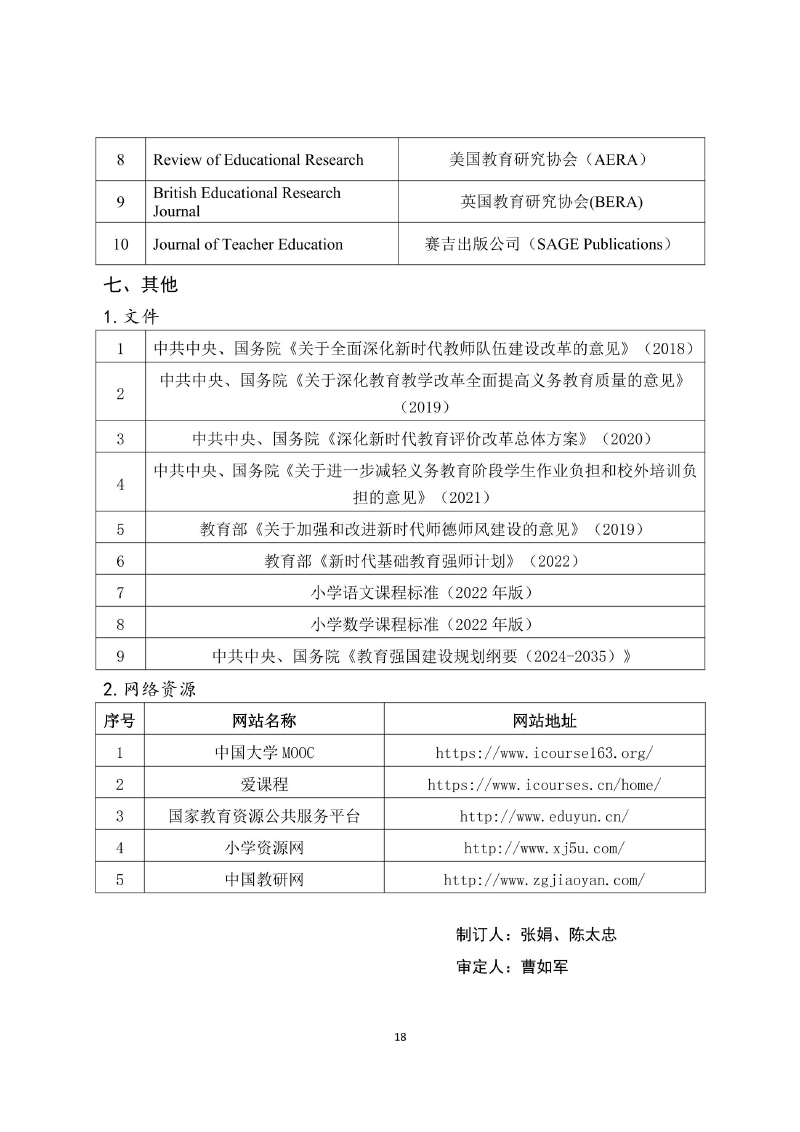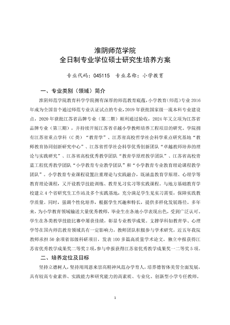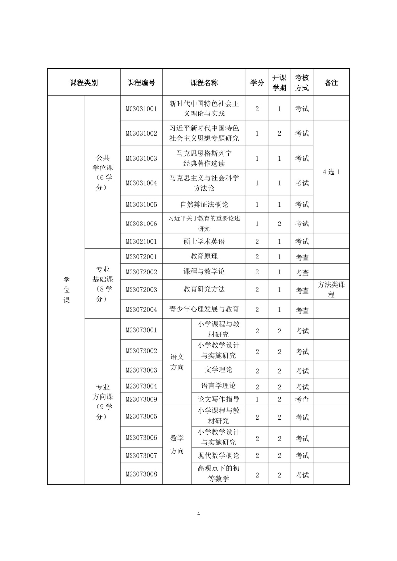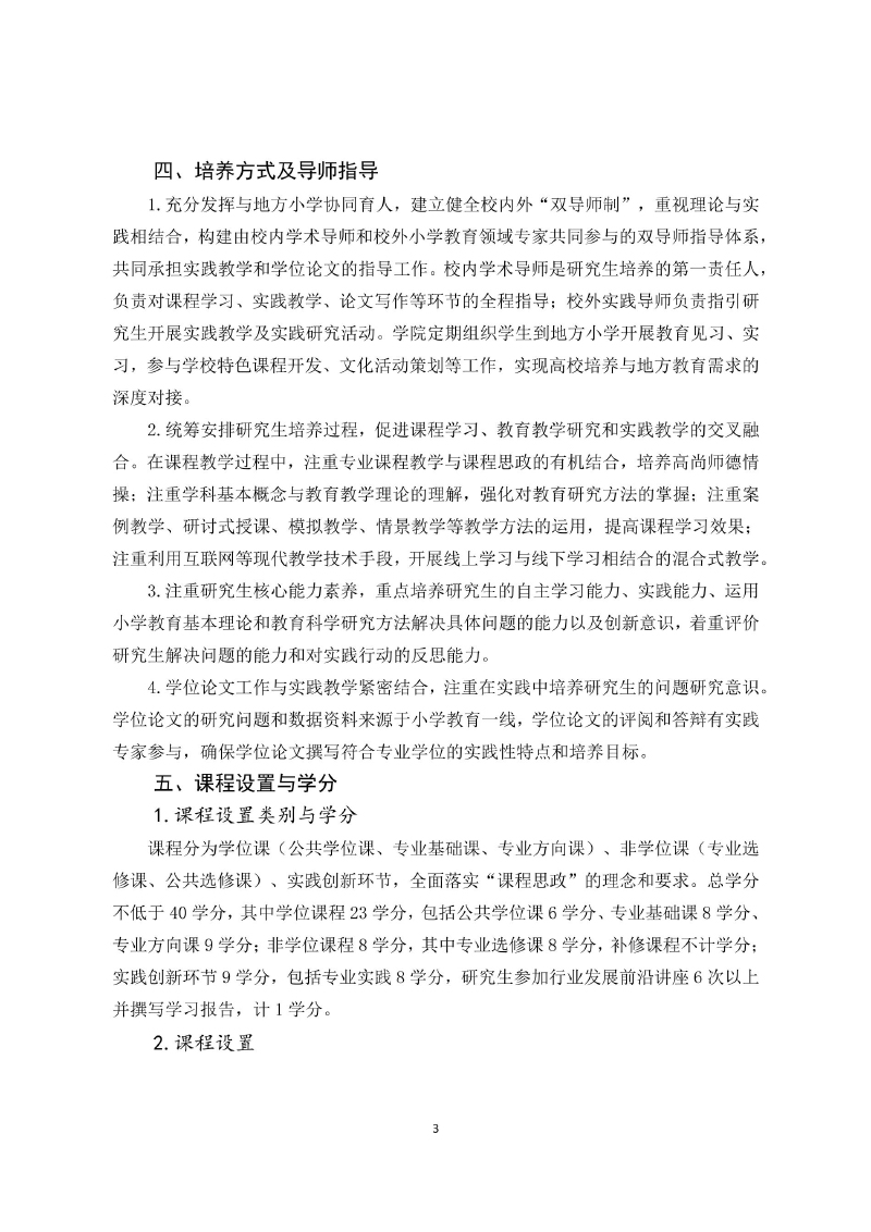 045115 ky开云网页版app全日制专业学位硕士研究生培养方案(小学教育)