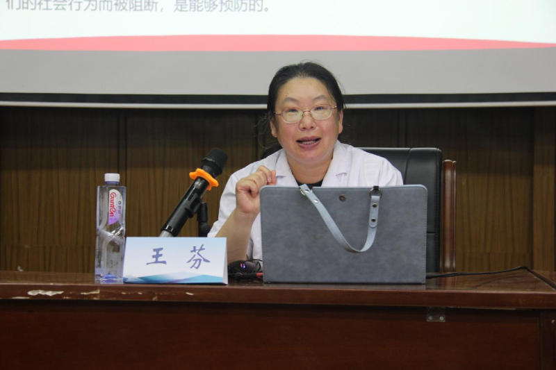 会议伊始,王芬介绍了全国艾滋病预防工作的开展情况,并通过相应的数据,让同学们对艾滋病形势有了直观而充分的认识。她强调,学校艾滋病防治工作事关青少年的健康安全,事关祖国的未来,要切实抑制青年学生人群中艾滋病的传播和流行,促进青年学生身心健康发展。
