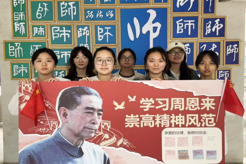 教科网9月28日电(记者 路雅茜)在国庆佳节来临之际,为传承伟人精神、厚植爱国情怀,9月27日下午,ky开云网页版app教育科学学院2302班以“与总理对话贺国庆,青春逐梦承初心”为主题,举办了一场融合历史追忆与国庆祝福的学习活动。同学们通过短片欣赏、国庆寄语等形式,跨越时空与周总理“对话”,在感悟总理崇高风范的同时,共庆祖国华诞,立下青春报国的誓言。